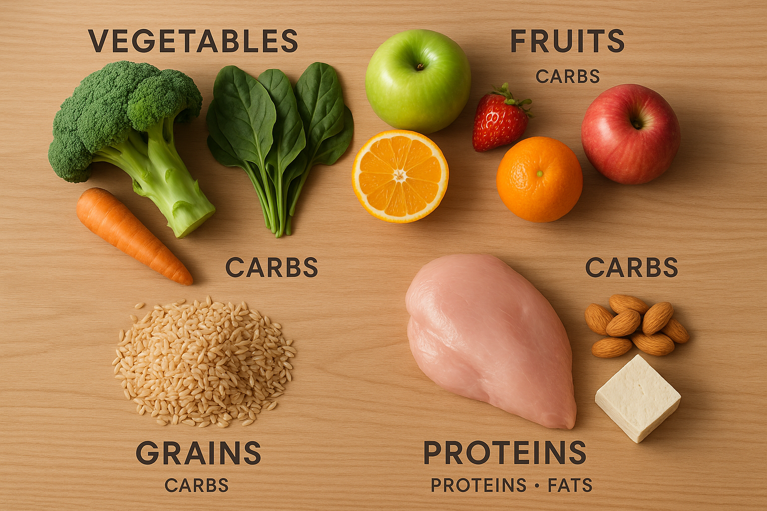 Cal AI takes nutritional tracking a step further by breaking down foods into categories like proteins, grains, vegetables, fruits, and dairy. It doesn’t stop there - it also shows how each group contributes to your intake of protein, carbohydrates, and fats.